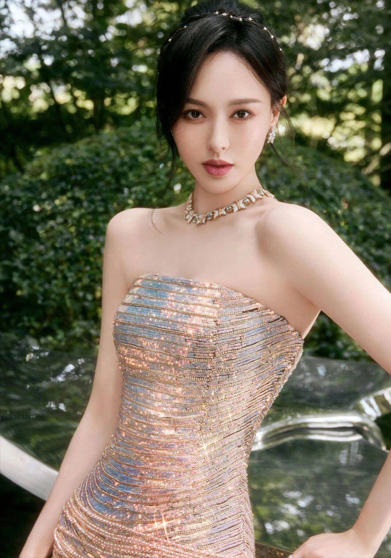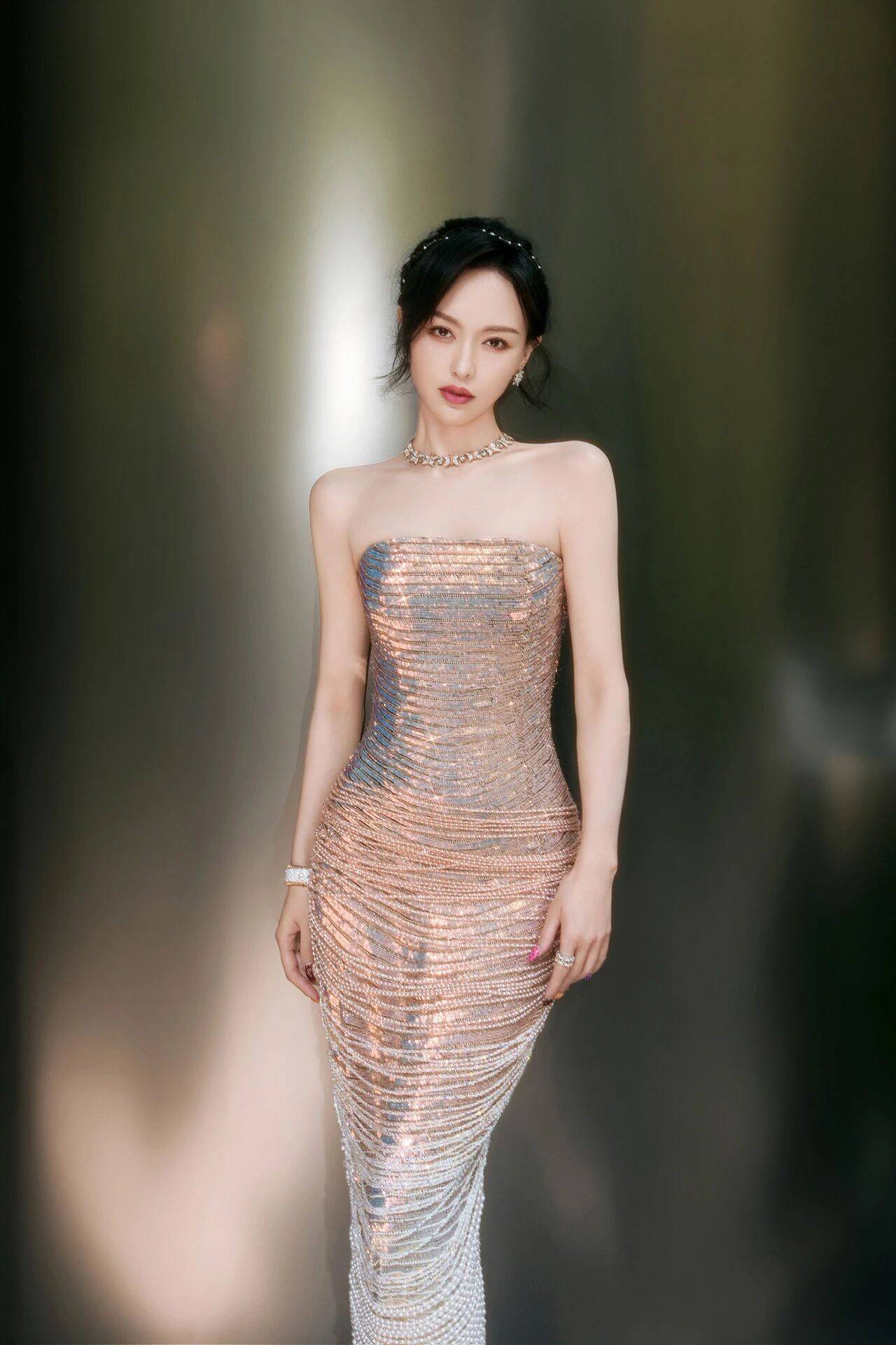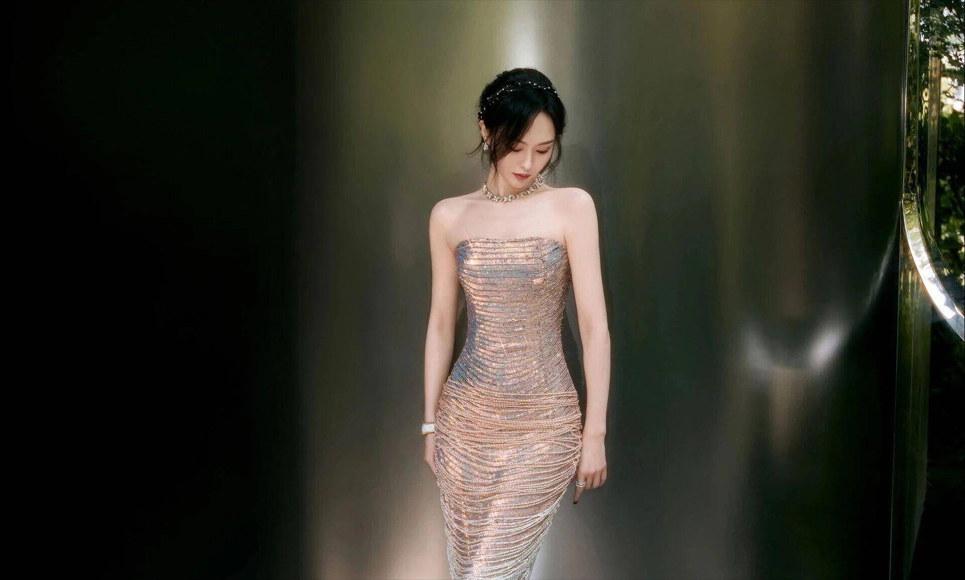相比传统的亮片礼服,这种带有细腻渐变和珠光感的面料,更适合成熟女性——它既能在舞台和红毯上抓住视线,又不会因为过度闪耀而显得浮夸。
