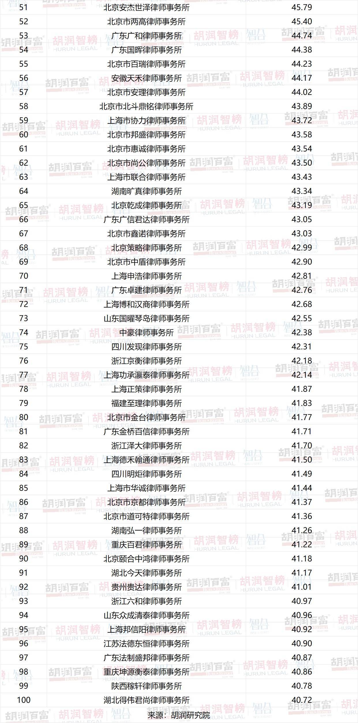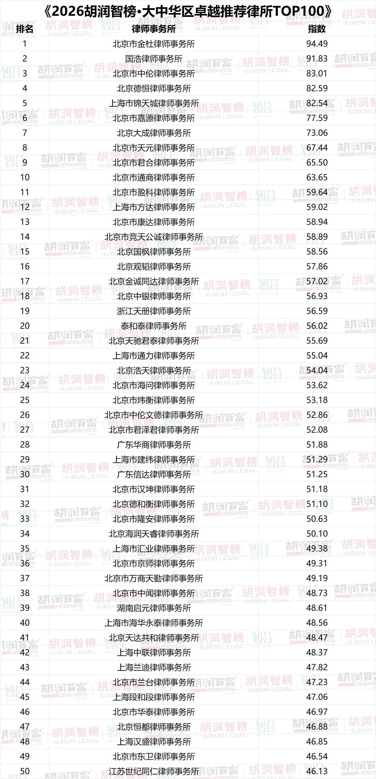 《2026胡润智榜·大中华区卓越推荐律所TOP100》榜单